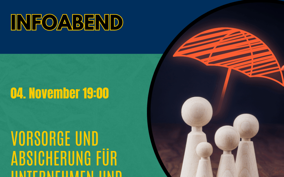 Am 04. November um 19:00 Uhr geht um das wichtige Thema Vorsorge und Absicherung für Unternehmen und Unternehmer